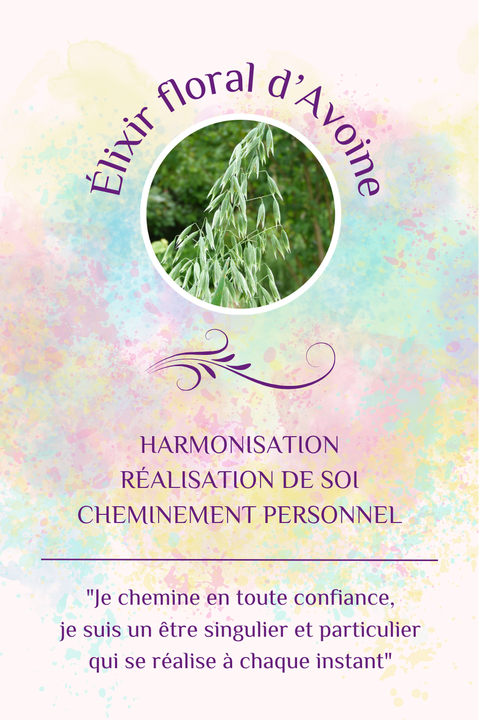 L’élixir floral d’Avoine amplifie la confiance en Soi et favorise l’action. Il ouvre la voie vers le cheminement et le développement personnel.