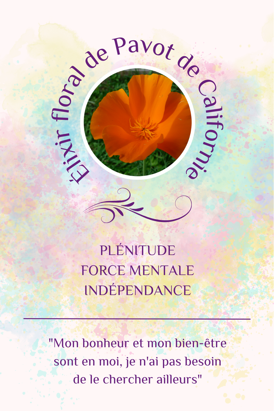 L’élixir floral de Pavot de Californie favorise l’écoute intérieure, l’équilibre psychique et spirituel. Il permet de réaliser que le bonheur et le bien-être ne se trouvent pas, il se créent, il sont en nous. Nul besoin d’échappatoires, nul besoin de fausses croyances limitantes.